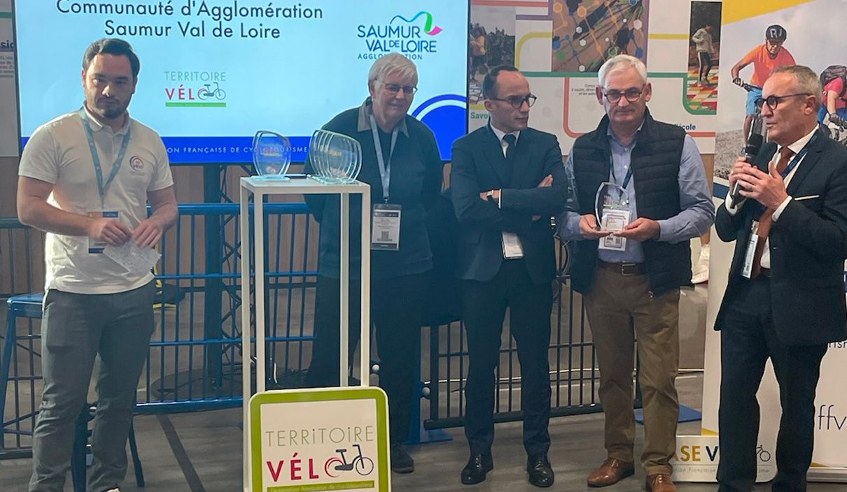 L'Agglomération Saumur Val de Loire reçoit officiellement le label Territoire Vélo par la Fédération Française de Cyclotourisme lors du Salon des Maires à Paris ce mercredi 22 novembre 2023.