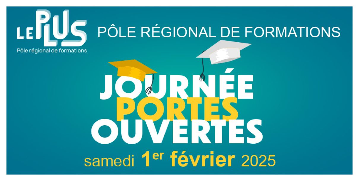 La journée portes-ouvertes du Pôle régional de formations, Le PLUS, se déroulera le samedi 1er février 2025 à Saumur. Pendant cette journée, vous êtes invités à découvrir Le Plus et ses formations et à rencontrer le personnel, les enseignants, les formateurs et les étudiants afin d'échanger sur un projet d'étude.