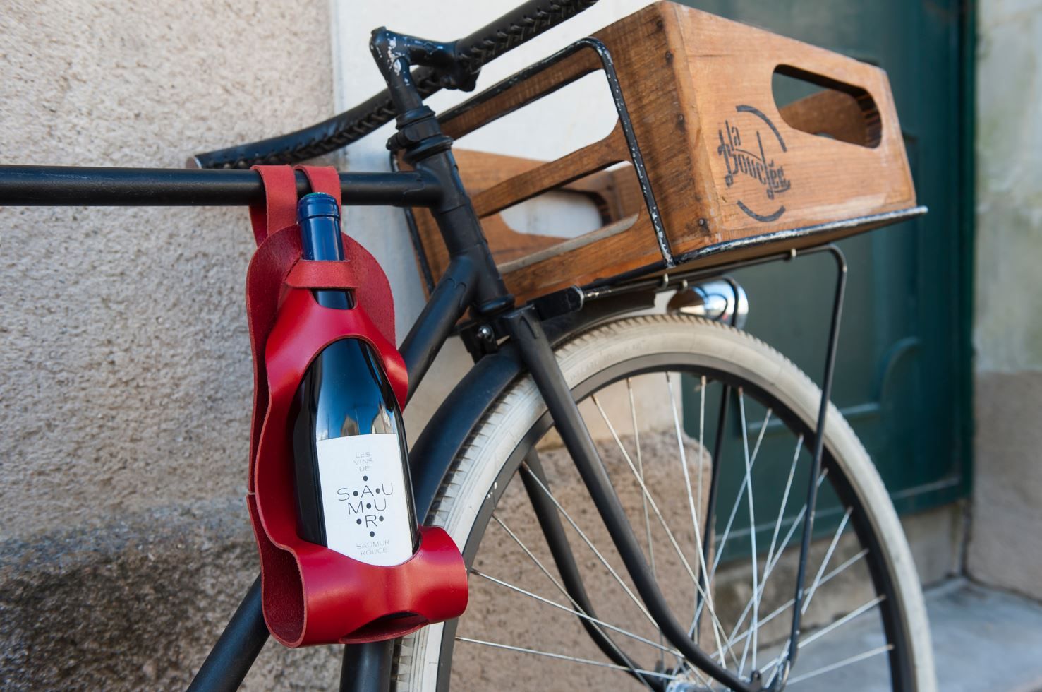 La Bouclée® est à l’origine un porte-bouteille d’une seule pièce de cuir de vachette avec tannage végétal, pour transporter une bouteille de vin sur le cadre ou le guidon d’un vélo. Pratique, design et original !